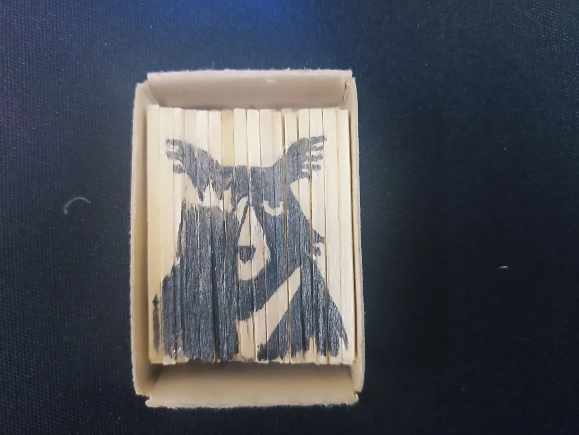 Павел Оглуздин — театральный художник. Предпочитает масштаб и размер. В работе использует разность фактур: металл, витражи, фантики от конфет. Он представил инсталляцию «Горящие петухи», которую образуют 5 объектов. С ними контрастирует инсталляция спичек и папирос. На них нанесено изображение гималайского медведя.