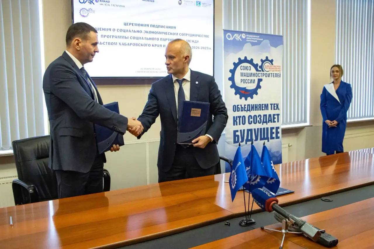 В ходе своего рабочего визита в Комсомольск губернатор также подписал соглашение с ОАК. Оно направлено на развитие инфраструктуры и благоустройство городского пространства Комсомольска-на-Амуре.