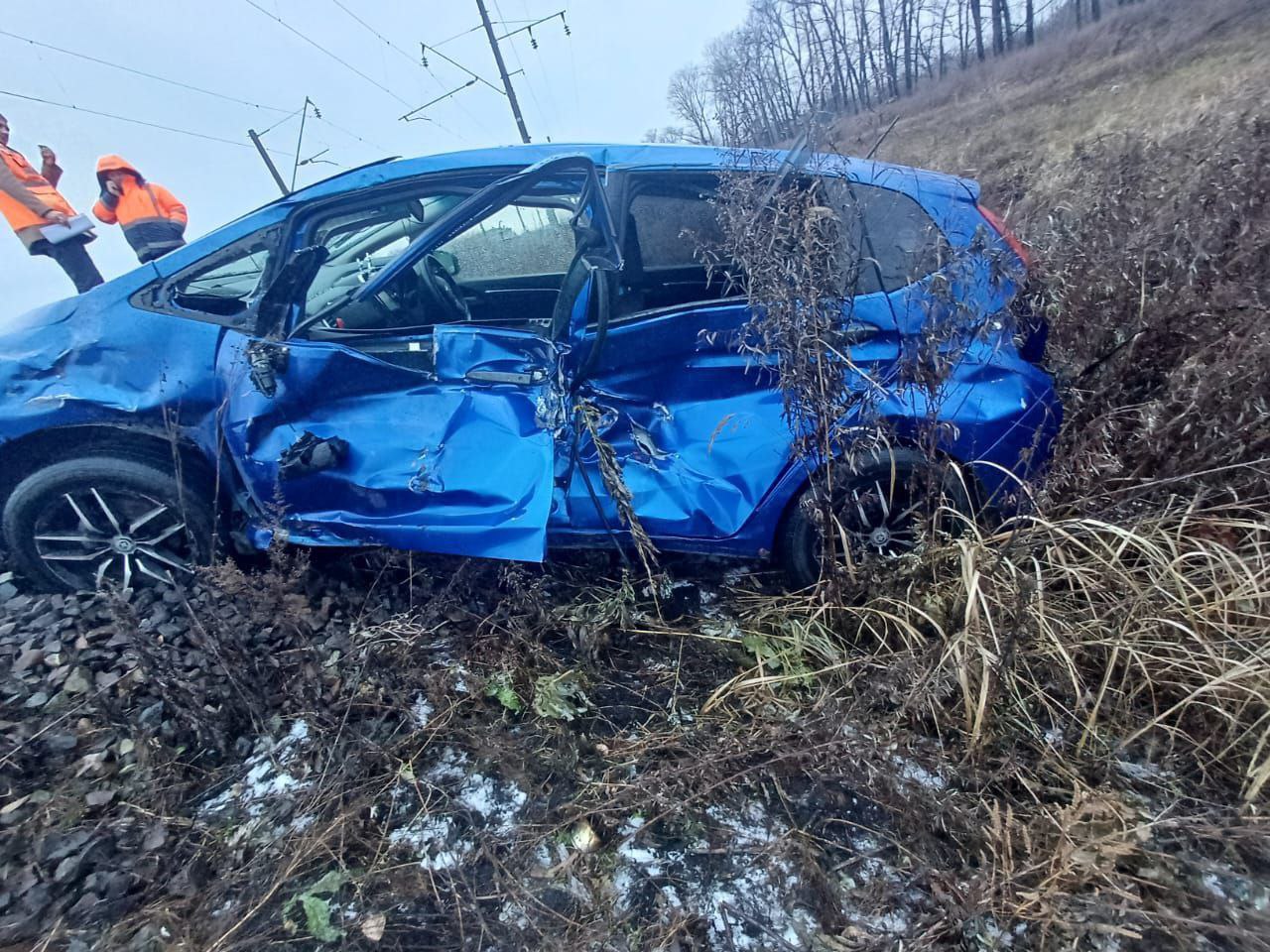 ДТП с участием грузового состава произошло сегодня около 5 часов утра в Вяземском районе, сообщает портал «Губерния» со ссылкой на тг «27dps_lazo». Водитель авто марки «Хонда Фит» выехал на железнодорожный переезд и внезапно заглох на путях. На переезде сработала световая и звуковая сигнализация. Водитель и пассажиры успели вовремя покинуть салон. В этот момент проезжавший грузовой поезд сбил пустой автомобиль.