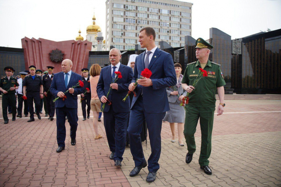 Вчера, 22 июня, губернатор Хабаровского края Михаил Дегтярев почтил память погибших в годы ВОВ, приняв участие в поминальном богослужении, которое прошло в Спасо-Преображенском кафедральном соборе. Он также возложил цветы к Вечному огню на площади Славы. Среди участников церемонии были ветераны войны и труженики тыла, врио командующего войсками Восточного военного округа генерал-майор Алексей Ртищев, начальник управления ФСБ России по Хабаровскому краю Максим Мухин, митрополит Хабаровский и Приамурский Артемий, члены правительства, мэр Хабаровска Сергей Кравчук, депутаты Законодательной Думы края, представители молодежных и общественных организаций.