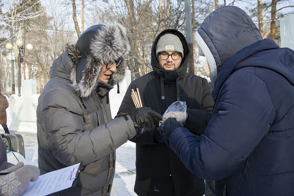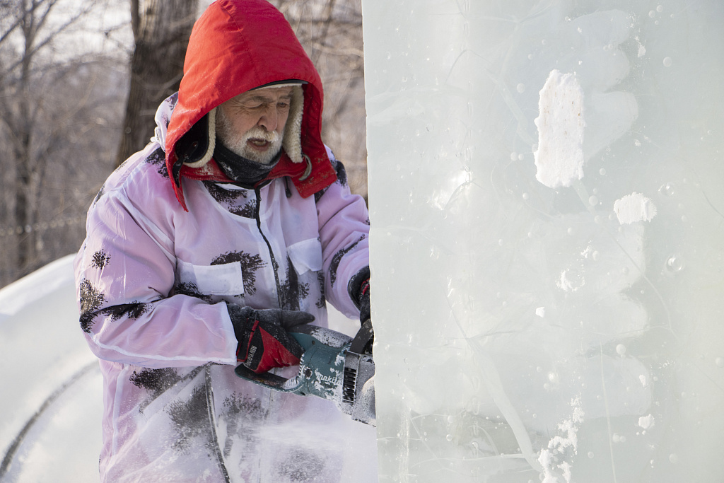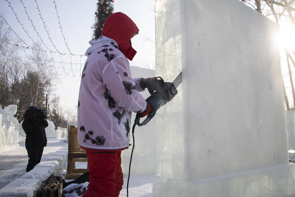 Согласно условиям конкурса, в парке установлено 9 ледяных блоков. Каждой команде, в состав которой входит 2 человека, по результатам жеребьевки нужно создать ледовые композиции. Мастера уже начали работу над созданием ледовых скульптур.