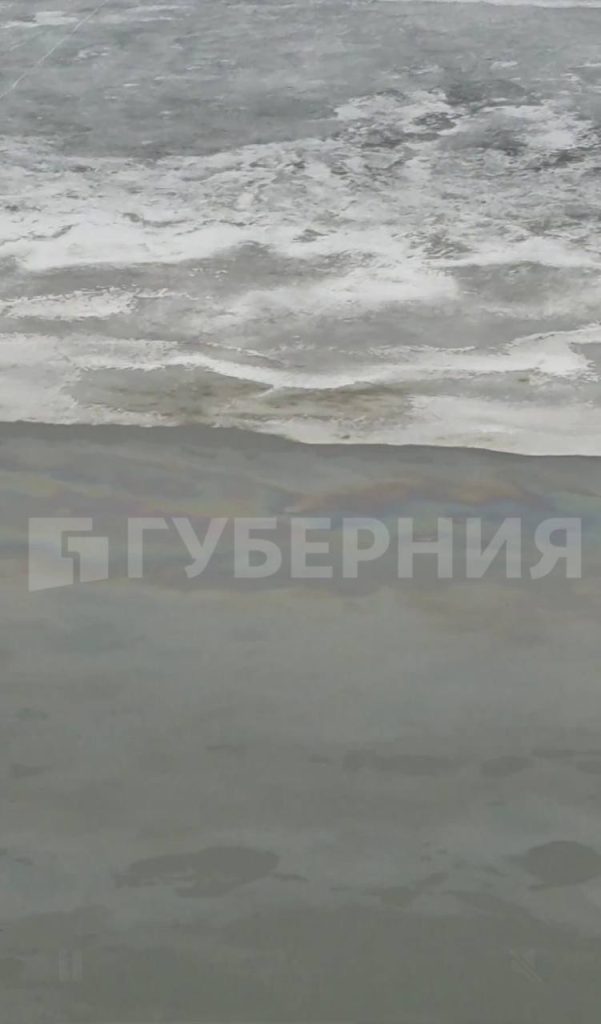Фото сделано накануне утром в районе арены «Ерофей». Ранее на прошлой неделе также поступала информация о пятнах, которые видно вдоль берега.