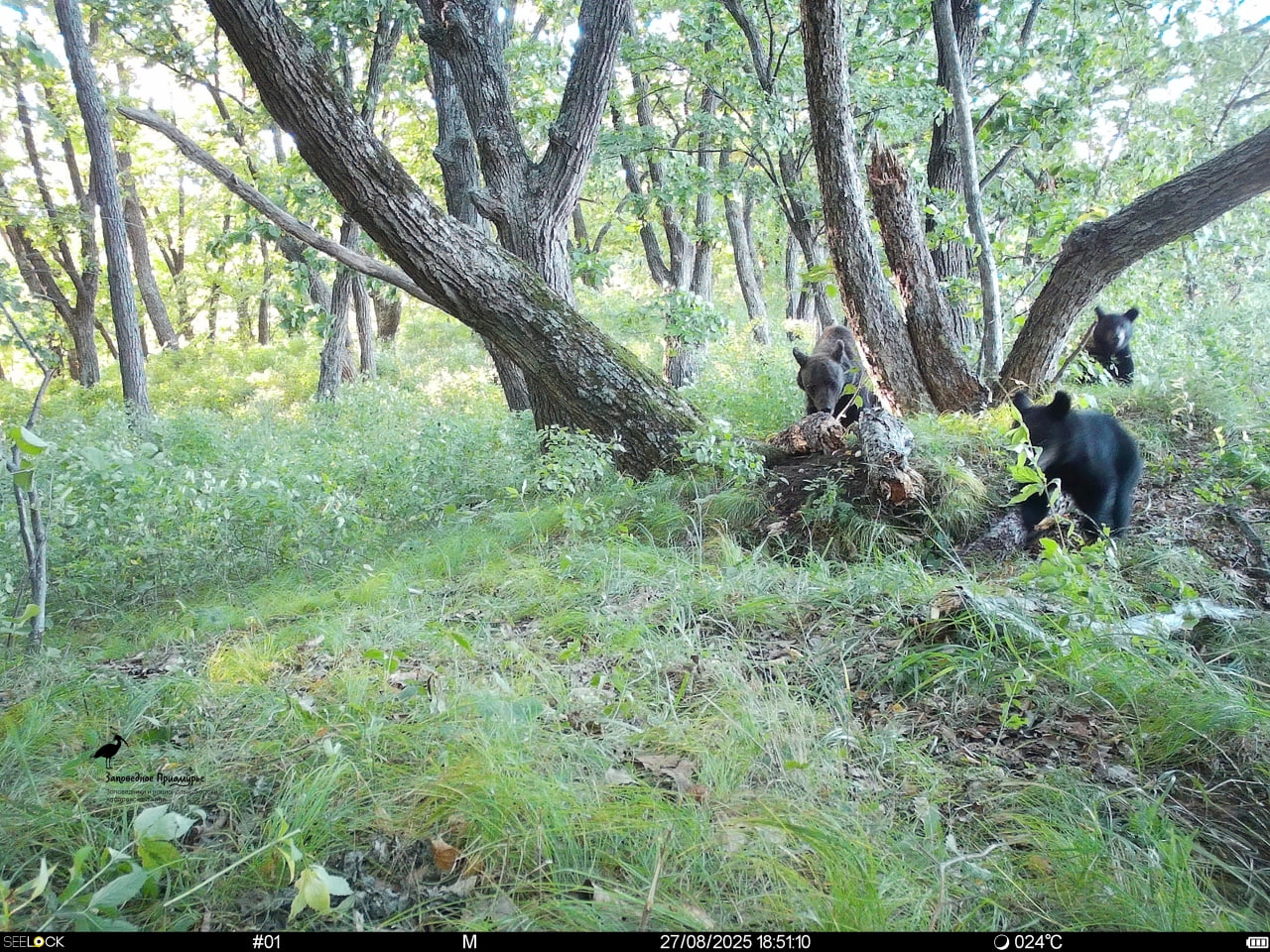 Сотрудники «Заповедного Приамурья» провели первые в новом году полевые работы. При проверке фотоловушек, установленных в заповеднике «Большехехцирский», ученые обнаружили, что одно из устройств уже кто-то открыл, вытащил батарейки, но карта памяти уцелела. С ее помощью и выяснилось, что на прибор покусился медвежонок, проходивший мимо с матерью и братом.