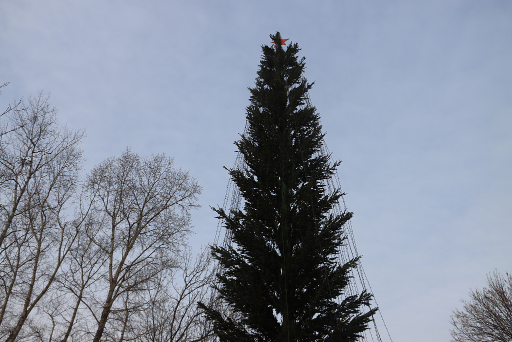 Подготовка территории к Новому году завершается. На центральной аллее парка уже возвели 18-метровая живую ель, собранную из 200 небольших деревьев. В ближайшее время ее украсят игрушками.