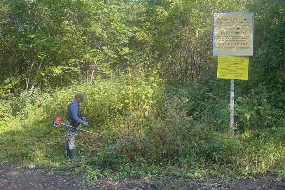 На территории природного парка «Питомник имени Лукашова» продолжают работы по благоустройству. В первую очередь рабочие расчистили территорию при въезде в питомник: скосили траву, убрали мелкий мусор, подготовили пространство для установки информационного аншлага.