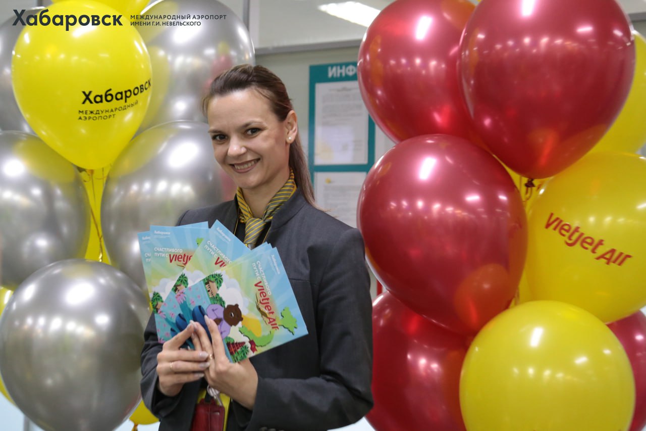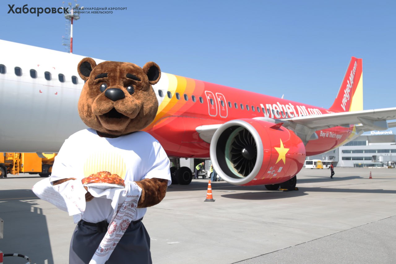 Сегодня в хабаровском аэропорту приземлился первый борт авиакомпании Vietjet Air, который будет доставлять туристов во Вьетнам. Воздушное судно приветствовали водной аркой.