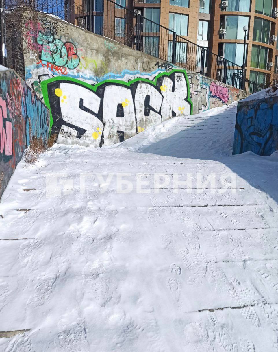 Лестницу на улице Кавказской (спуск к Амуру), кажется, вообще не чистили этой зимой. Ходить там страшно – есть риск получить травму.