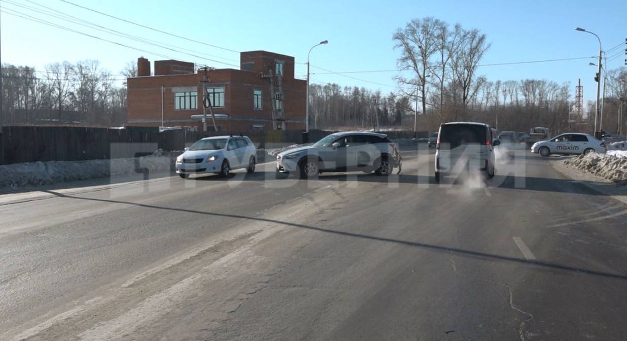 Авария произошла у остановки «Красный Яр». Водитель «Сузуки Свифт» вылетел на встречку, где столкнулся с двумя «Маздами».