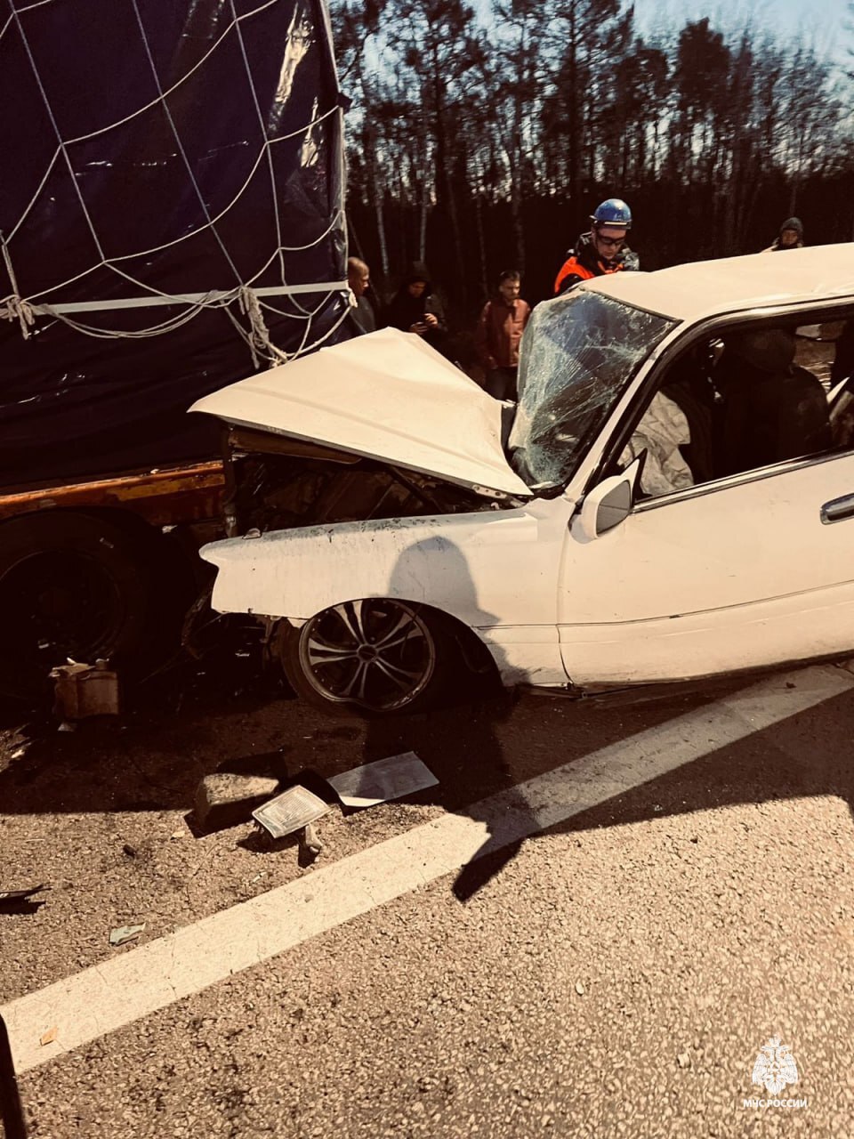 ДТП произошло сегодня на 36 км трассы А-370 «Уссури». Легковой автомобиль врезался в стоящую на обочине фуру. Водителя зажало в салоне, выбраться самостоятельно он не мог.