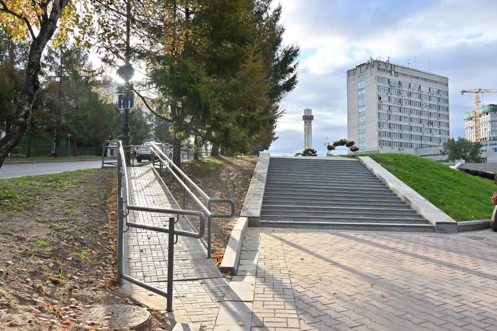Ремонт выполнили на участке в районе площади Славы. Там сделан косметический ремонт, уложена новая плитка и восстановлена геометрия, а также отремонтирована лестница и установлен новый пандус.
